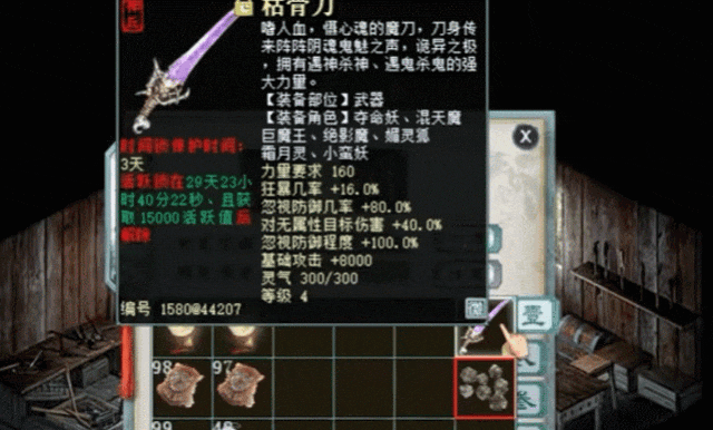 玩家换出了一把破物理枯骨刀,先冲到了四级,然后是准备冲五了,那么会顺利吗?看图,看图!